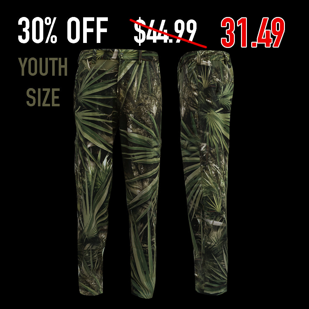 Youth FL Camo Palmetto performance pants. (Resized) The Perfect pants for your little hunting buddy!
